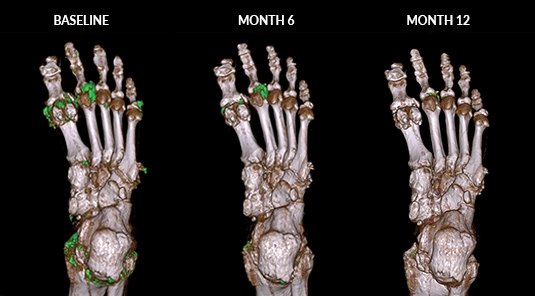 In clinical trials, more than half of patients treated with KRYSTEXXA with methotrexate had at least 1 tophus completely go away by Month 12, and they didn’t experience any new tophus growth.* Finishing all your treatments as your doctor prescribes is important to get the full benefit of KRYSTEXXA.